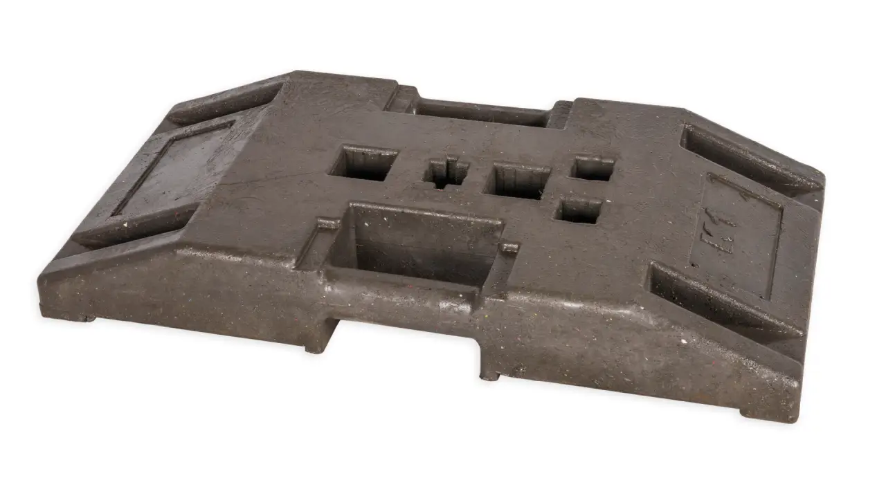 Das Modell 10006.2 ist ein einfacher K1-Kunststofffuß mit einem Gewicht von 28 kg. Aufgrund seiner Form eignet er sich sehr gut für unebenes Gebiet.